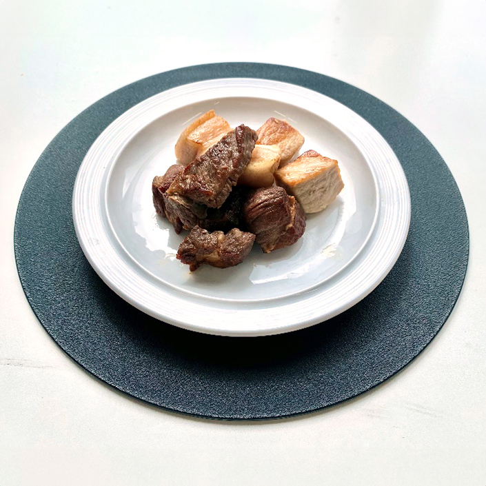 ●サイコロステーキ ・ビーフとポーク盛り合わせ ・価格 600円 ・各日とも限定350食