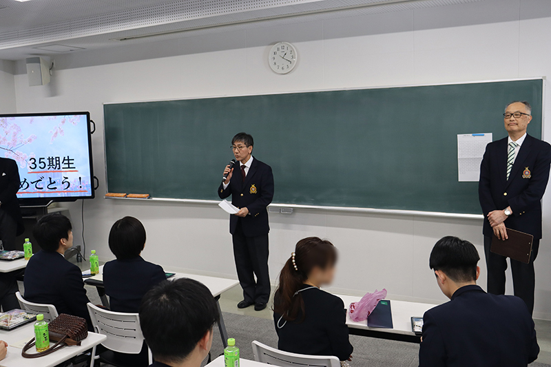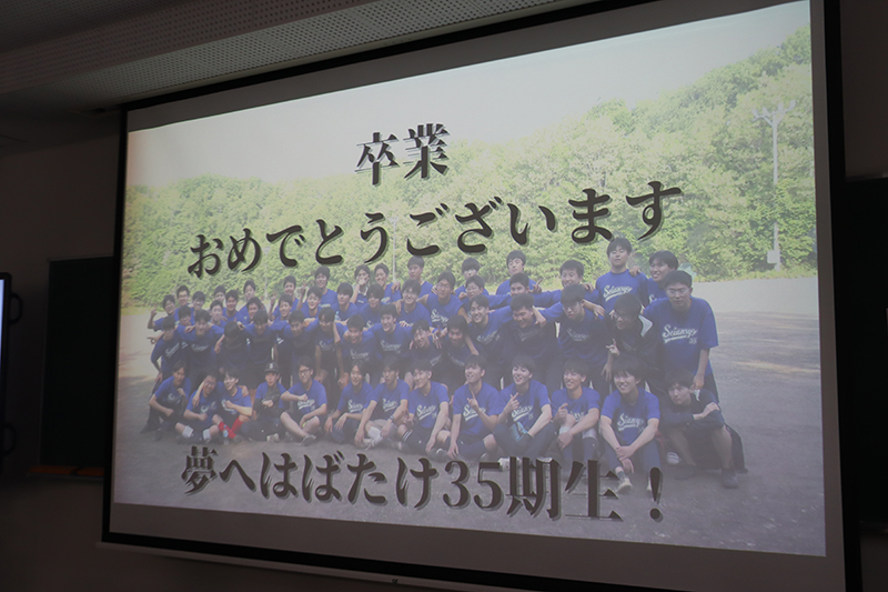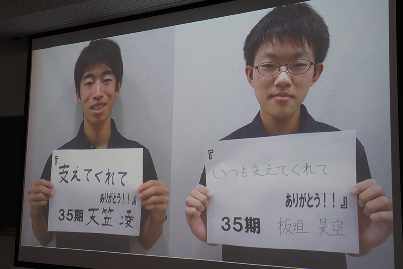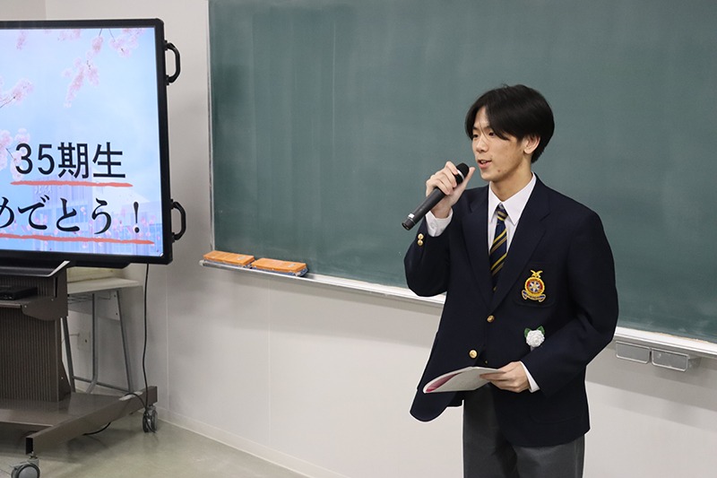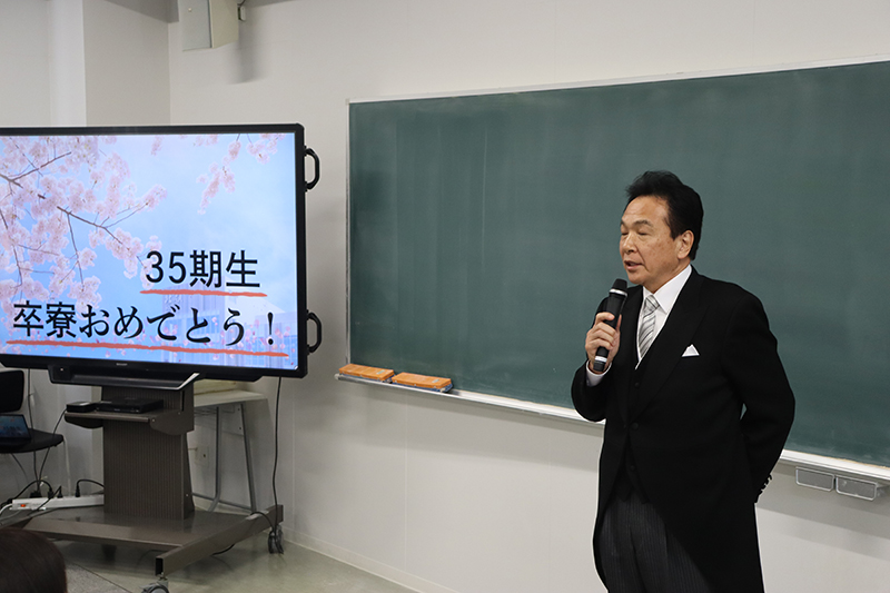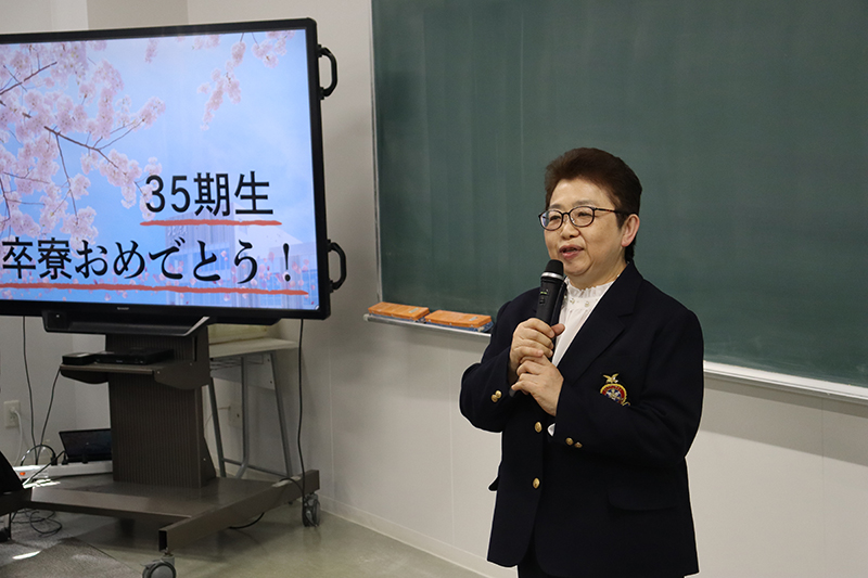 3月1日(日)、青雲寮卒寮式および卒寮生を囲む会が行われました。卒寮式では、井口寮監長、谷地田校長、寮母の中川原さん、星野副寮監長より温かい言葉と35期寮生に向けてのエールをいただきました。その後、卒寮生を代表して百貫君からお礼の言葉が述べられ、「あっという間の6年間であり、35期寮生の仲間と過ごした時間がかけがえのない思い出です」と、寮生活を振り返りながら感慨深げに語る姿が印象的でした。卒寮式終了後に行われた卒寮生を囲む会では、寮生活を振り返るスライドショーが上映されました。6年間の思い出の数々に浸り、会場は涙あり笑いありの温かな雰囲気に包まれました。苦楽を共にした仲間たちとの別れを惜しみながら、卒業・卒寮という節目を寮職員および保護者の皆様とともに祝いました。別れは寂しいものですが、卒寮生たちがこれからそれぞれの道でさらに成長し、また元気な姿で寮を訪れてくれることを心待ちにしています。35期寮生の輝かしい未来を、心より期待しています。